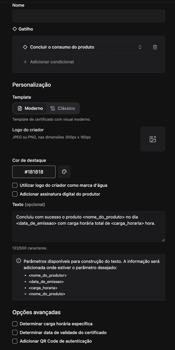 Pronto! A partir daí, sempre que o aluno cumprir os critérios definidos, o certificado será emitido automaticamente.
