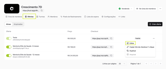 - Siga até Ofertas e clique no botão Editar nos três pontinhos laterais